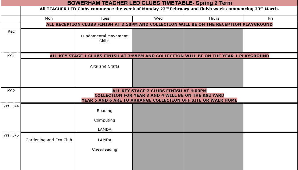 These clubs run in term time only, unless specified. Please contact the Office Team on schoolsecretary@bowerham.lancs.sch.uk for leader’s emails.